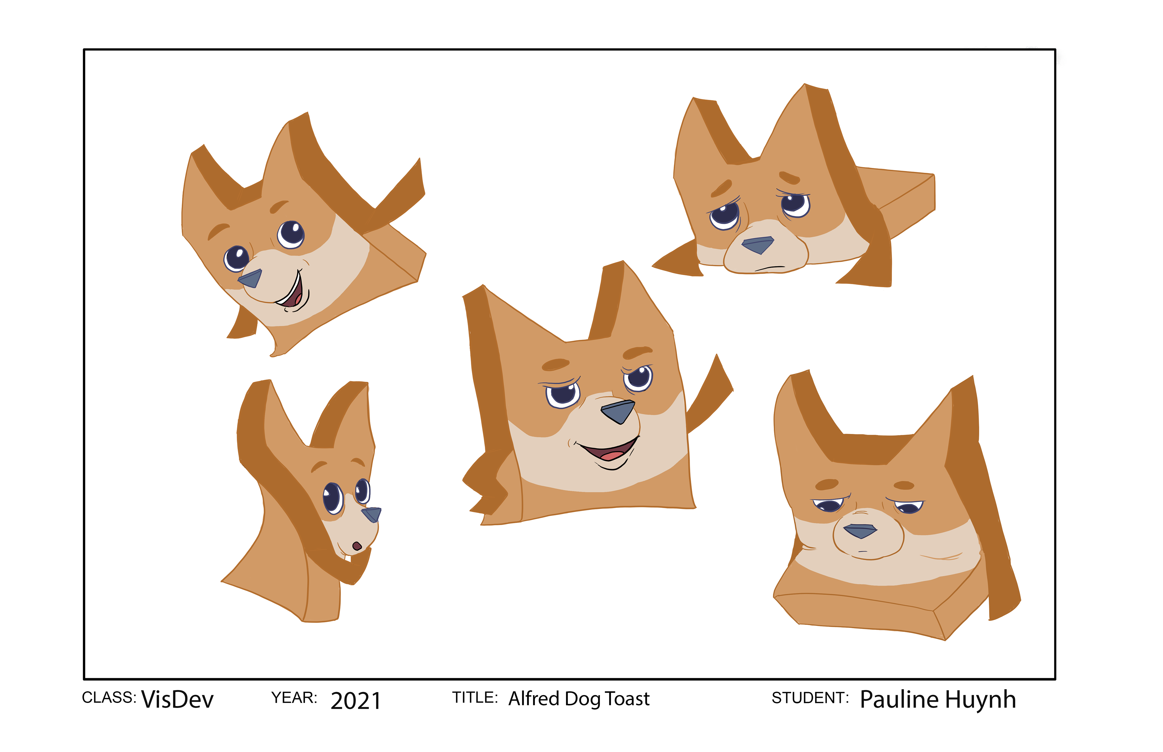 First Character Model Sheet of my thesis film character, Alfred the Dog Toast